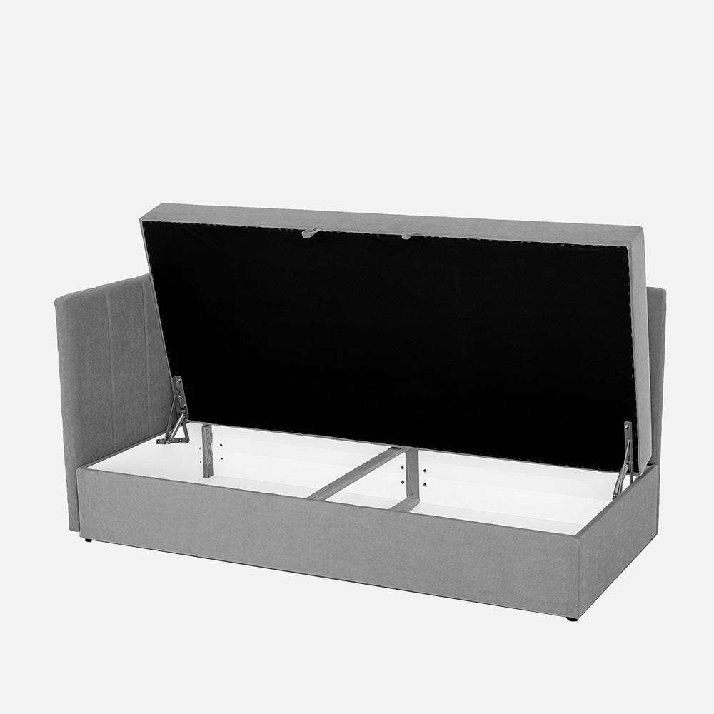 Jednolůžko s úložným prostorem a rohovým čelem je elegantní a praktické řešení do ložnic, studentských pokojů nebo hostinských místností. Nabízí komfortní matraci, úložný prostor a rohové čelo, které poskytuje vyšší pohodlí při sezení a moderní vzhled postele.
