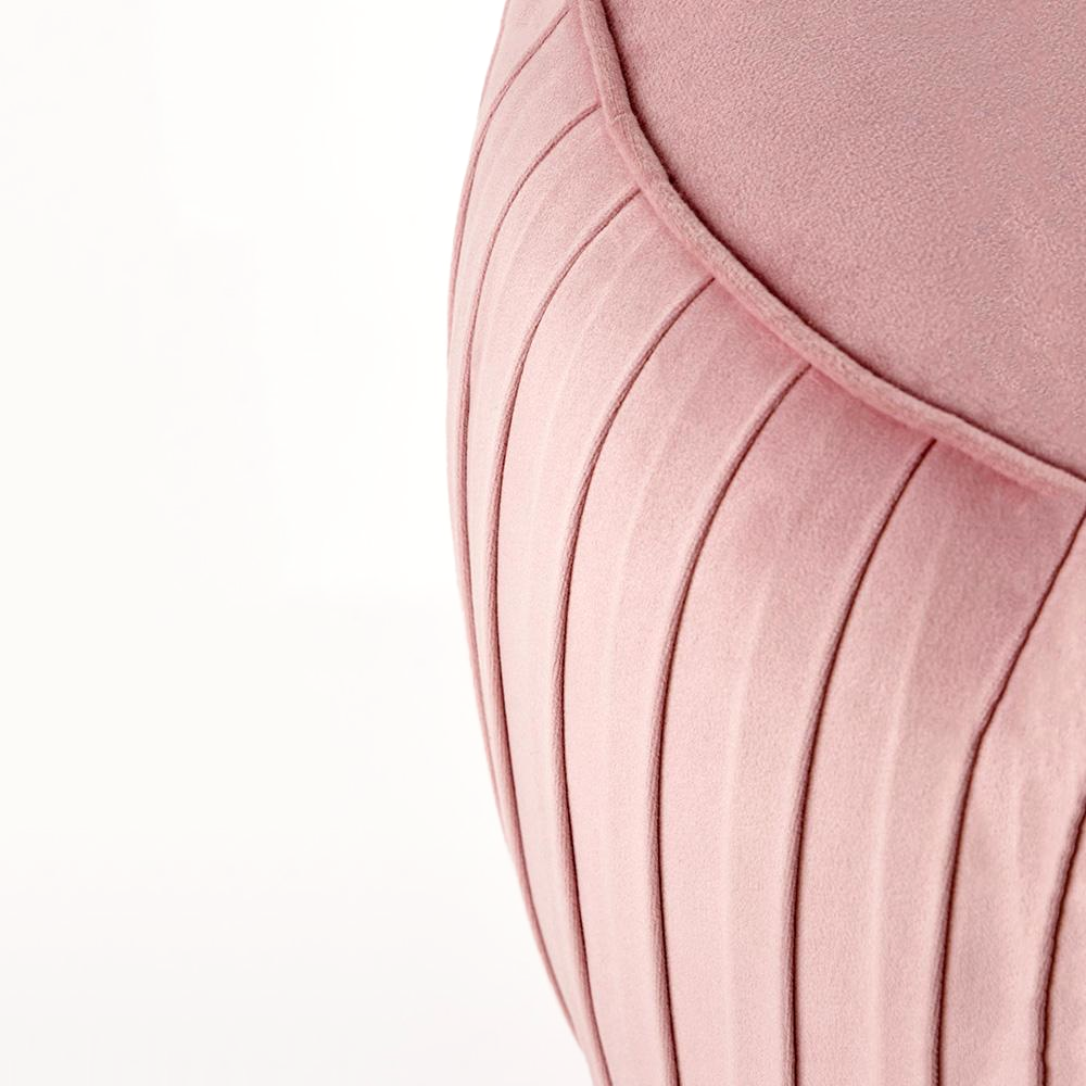 Taburet Aladin zaujme svým jedinečným válcovým tvarem a výraznými detaily. Kulatý design v kombinaci se sametovou látkou působí moderně, elegantně a zároveň útulně. Světle růžové provedení dodá interiéru jemnost a stylový nádech.