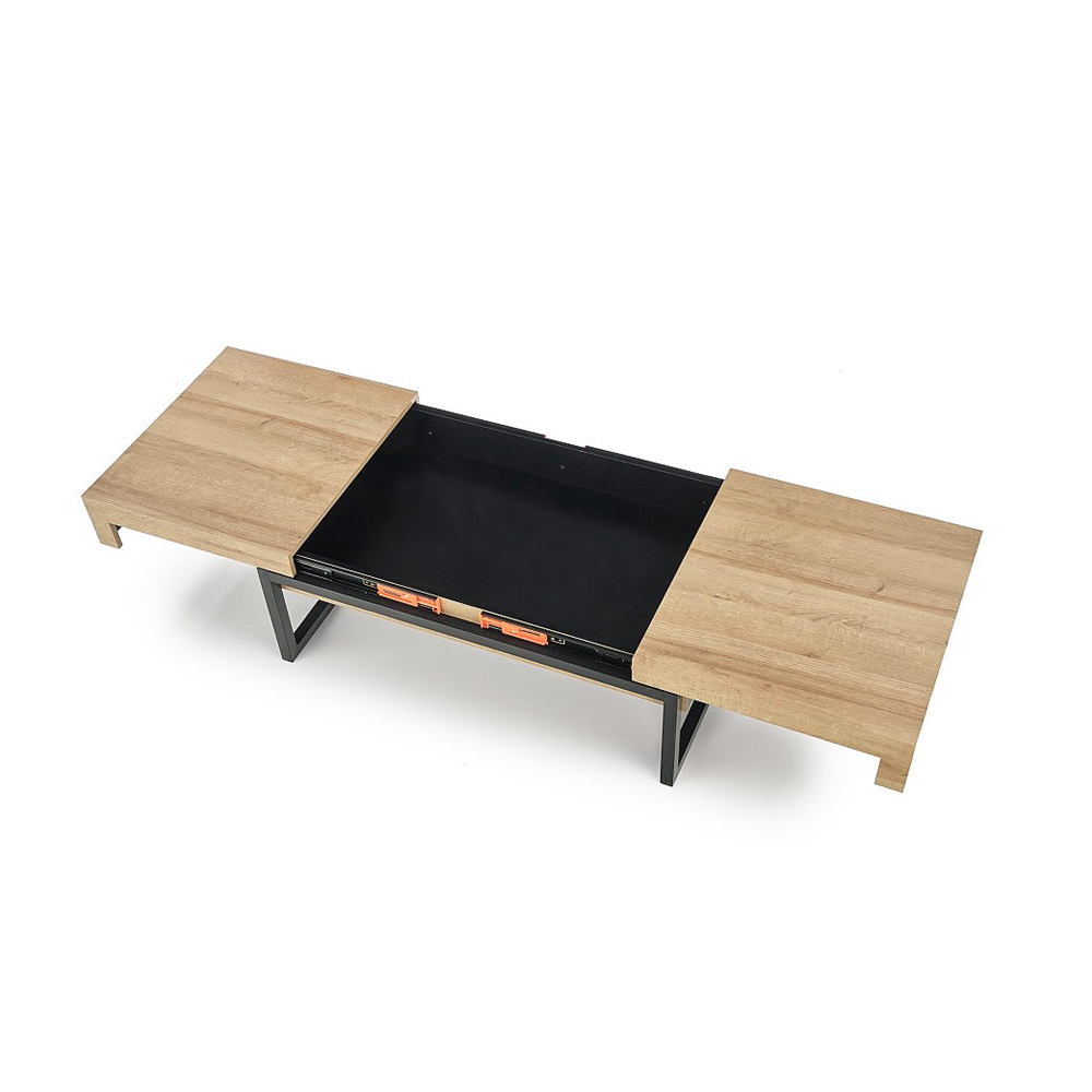 Konferenční stolek s úložným prostorem, rozměr 120×60×40 cm, MDF dýhovaná s barevnou podnoží, barva dub zlatý/černá.