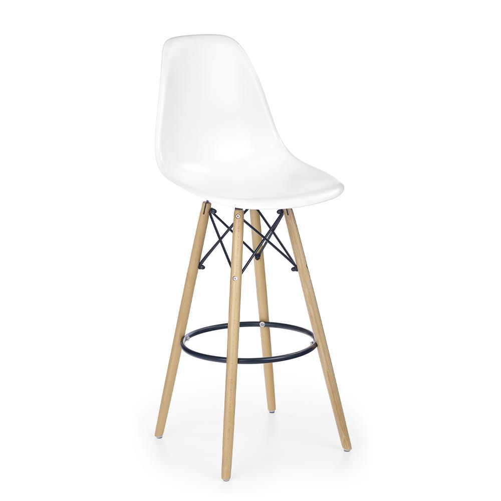 Barová židle z masivního dřeva, chromu a polypropylenu, barva buk/polypropylen bílá nebo černá, rozměr 54×115 cm, výška sedu 76 cm.