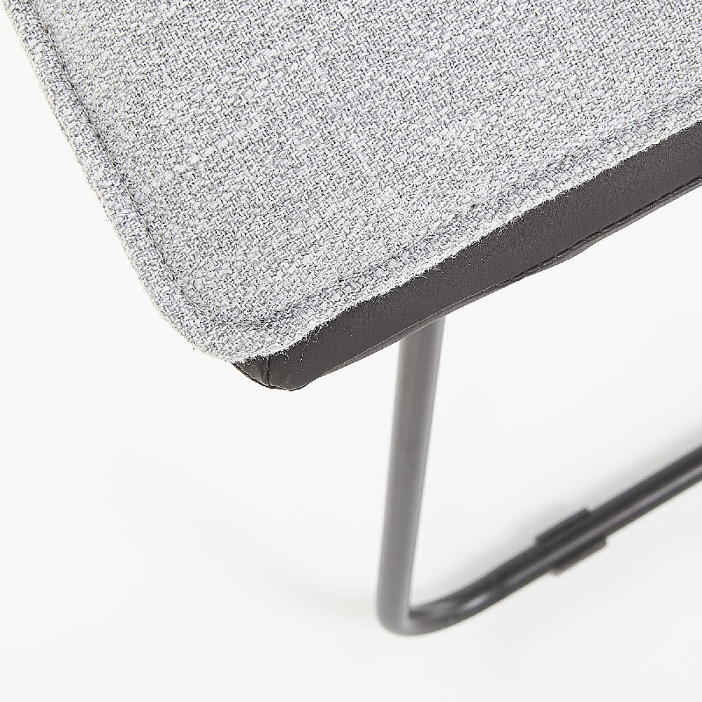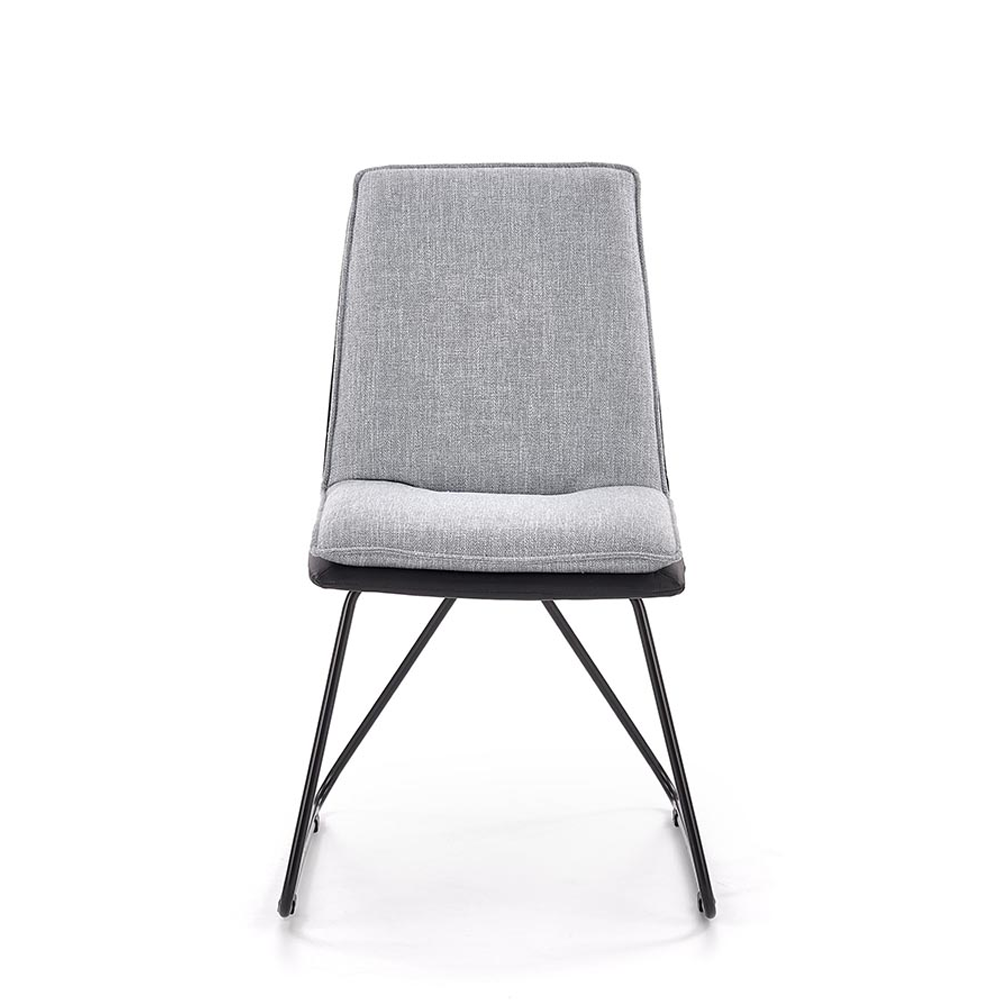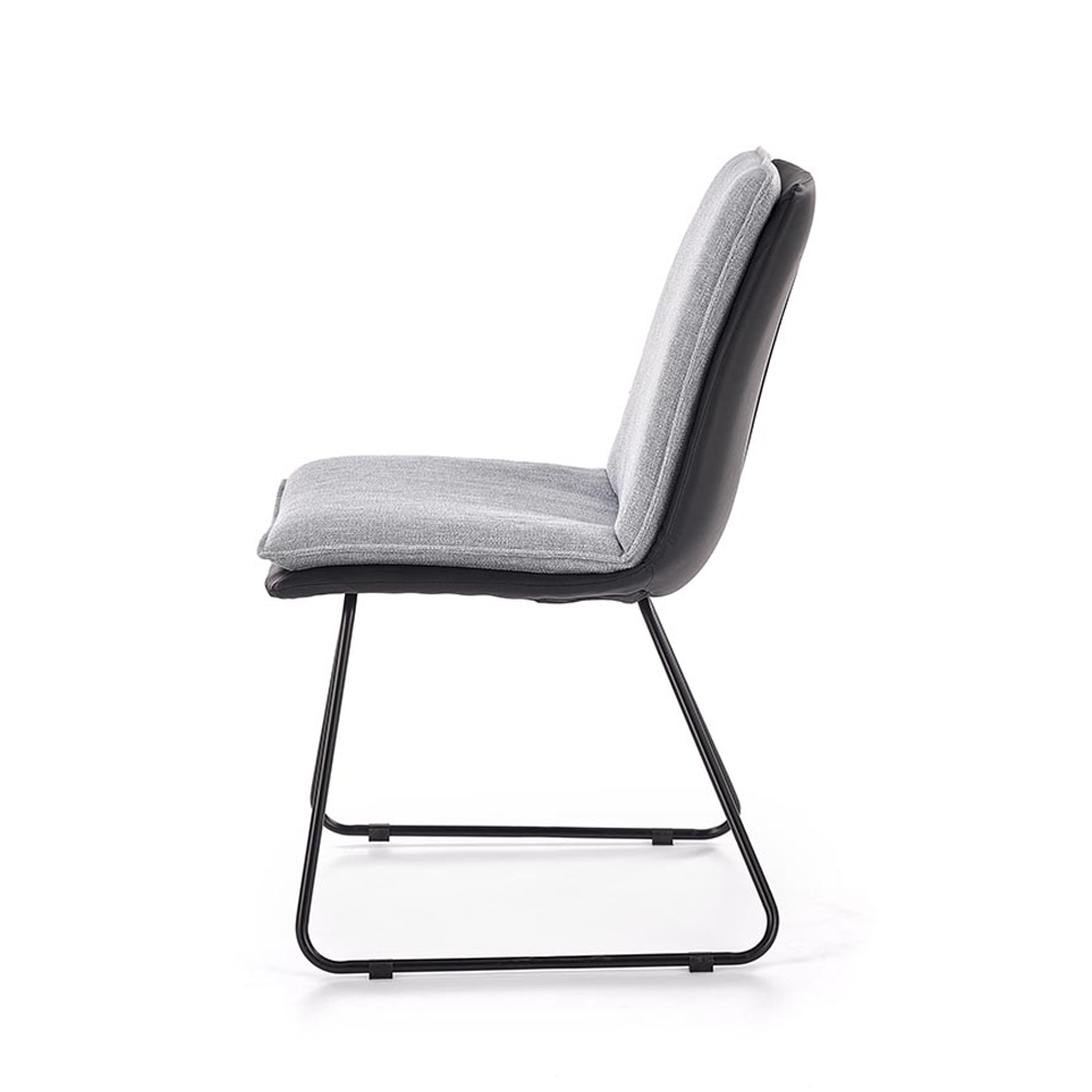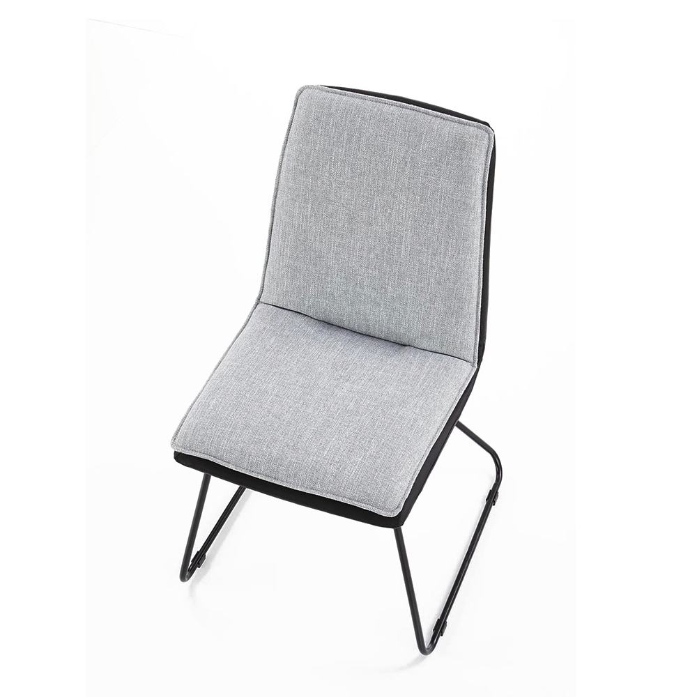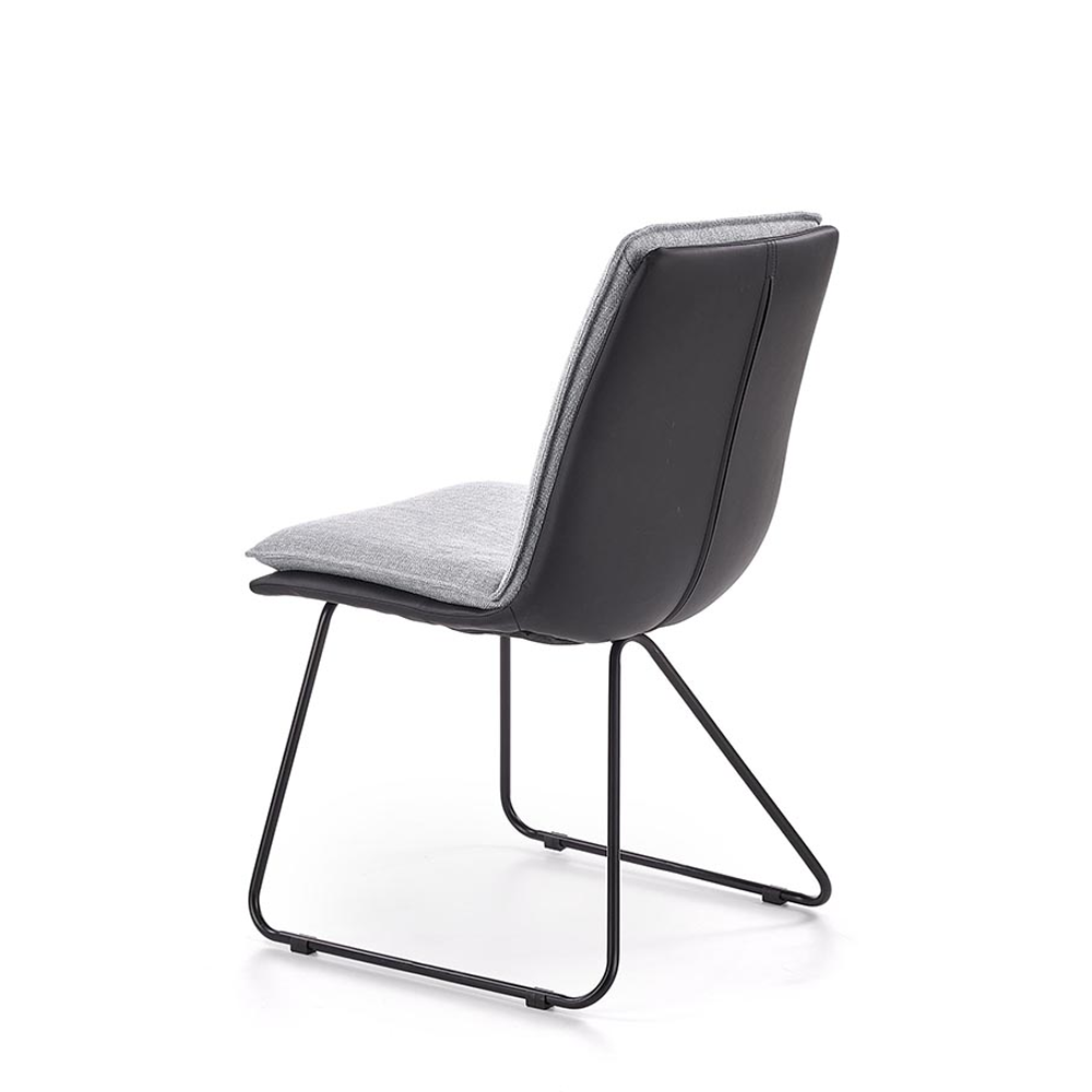 Jídelní židle s černým nebo šedým textilním sedákem a černými kovovými nohami. Dodáváno v demontu, pouze do vyprodání zásob.