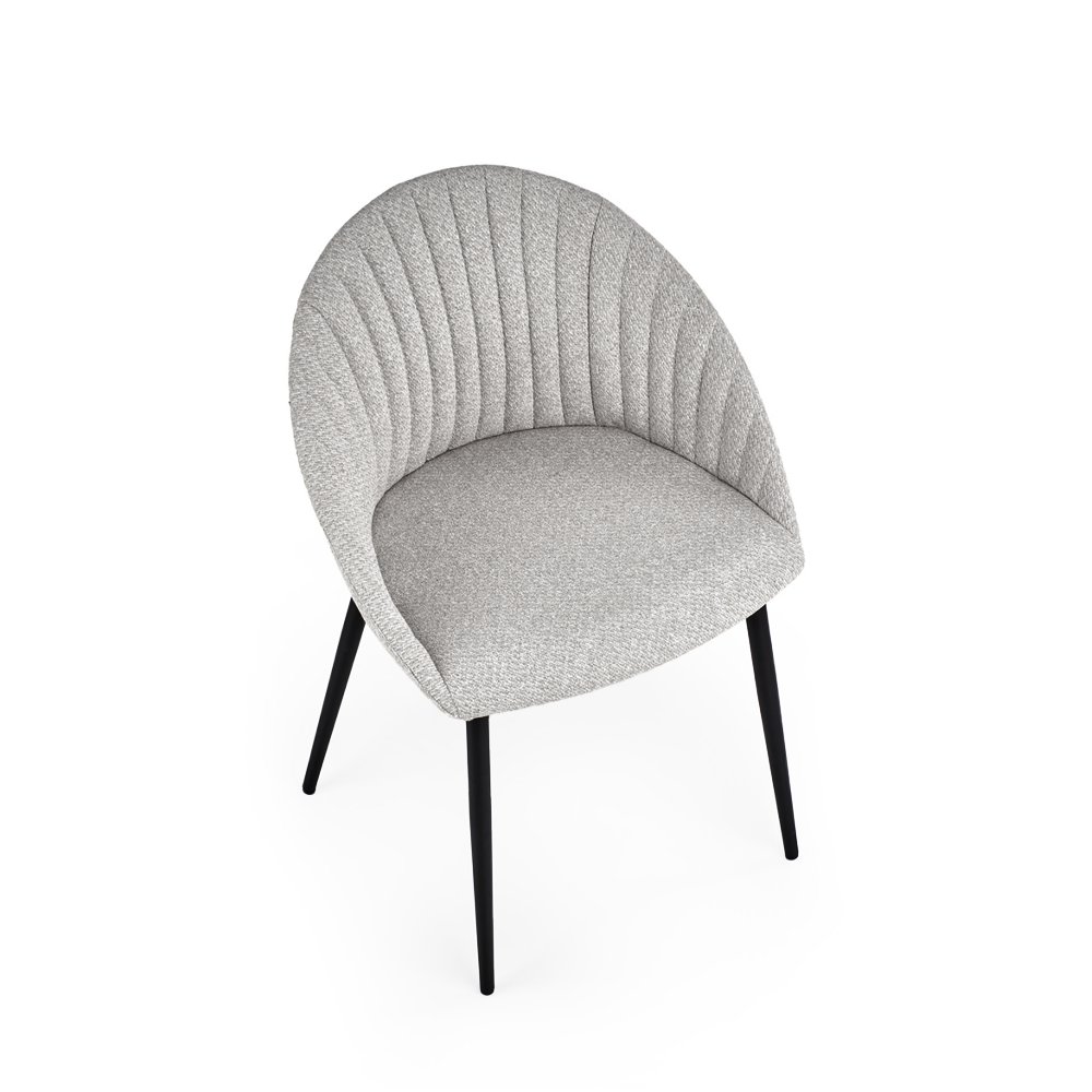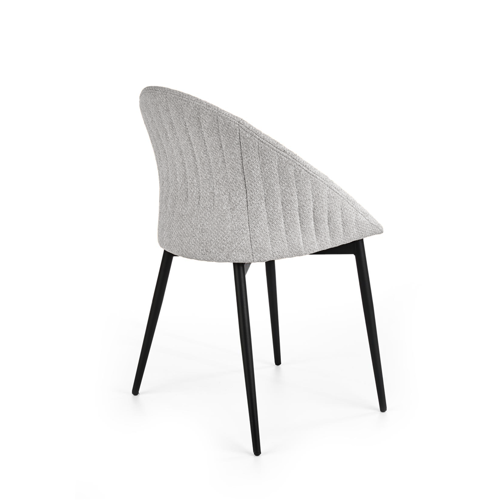 Jídelní židle K357 kombinuje jednoduchý moderní design s pohodlným látkovým sedákem. Pevné černé kovové nohy zajišťují stabilitu a dlouhou životnost. Židle je dostupná v elegantní šedé nebo béžové barvě, ideální pro zařízení jídel, kuchyní či kanceláří.