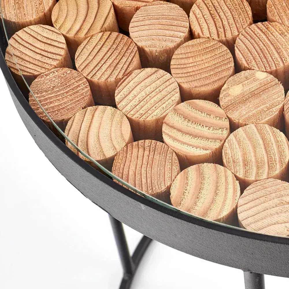 Sada dvou stolků se skleněnou deskou, smrkovým masivem a černými kovovými nohami, rozměr 61ר47 cm. Dodáváno v demontu.