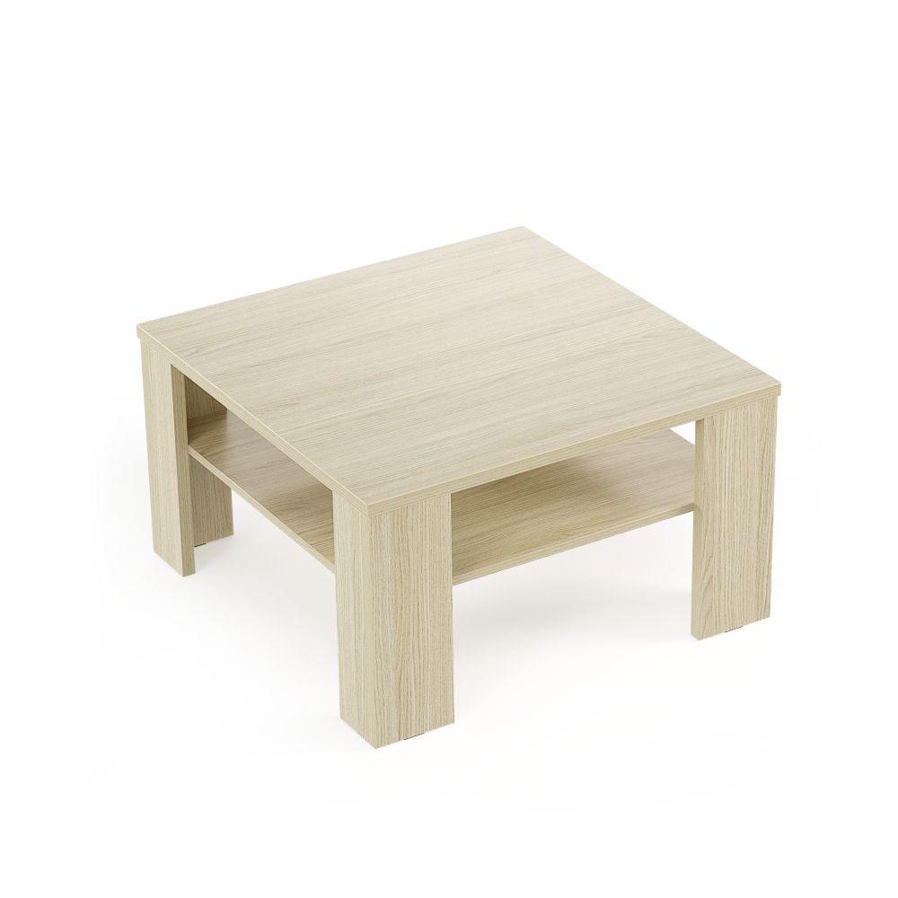 Moderní konferenční stolek s policí. Rozměr: š80 × h80 × v45 cm. Poskytuje úložný prostor a hodí se i do menších místností. Dodáván v demontu.